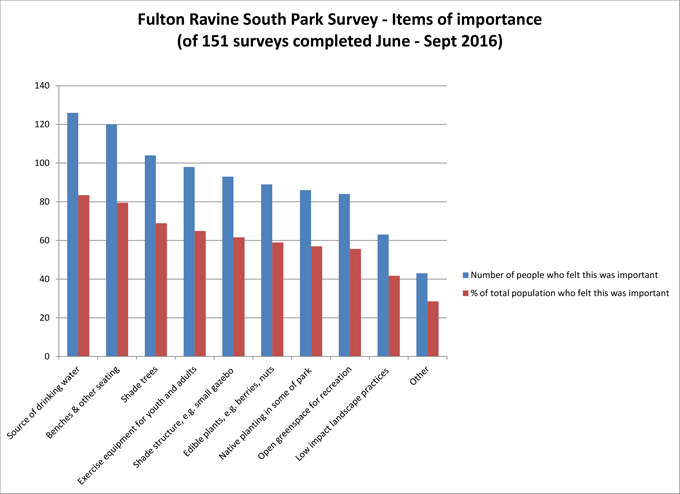 And now that we have the funds for the outstanding elements, we can get into planning for other features to include as phase 2 of development! As mentioned in previous updates, a community survey conducted in 2016 to ask local residents what features to include in this park. Survey results have been compiled and we have prepared a report that is available on our website for review or download.